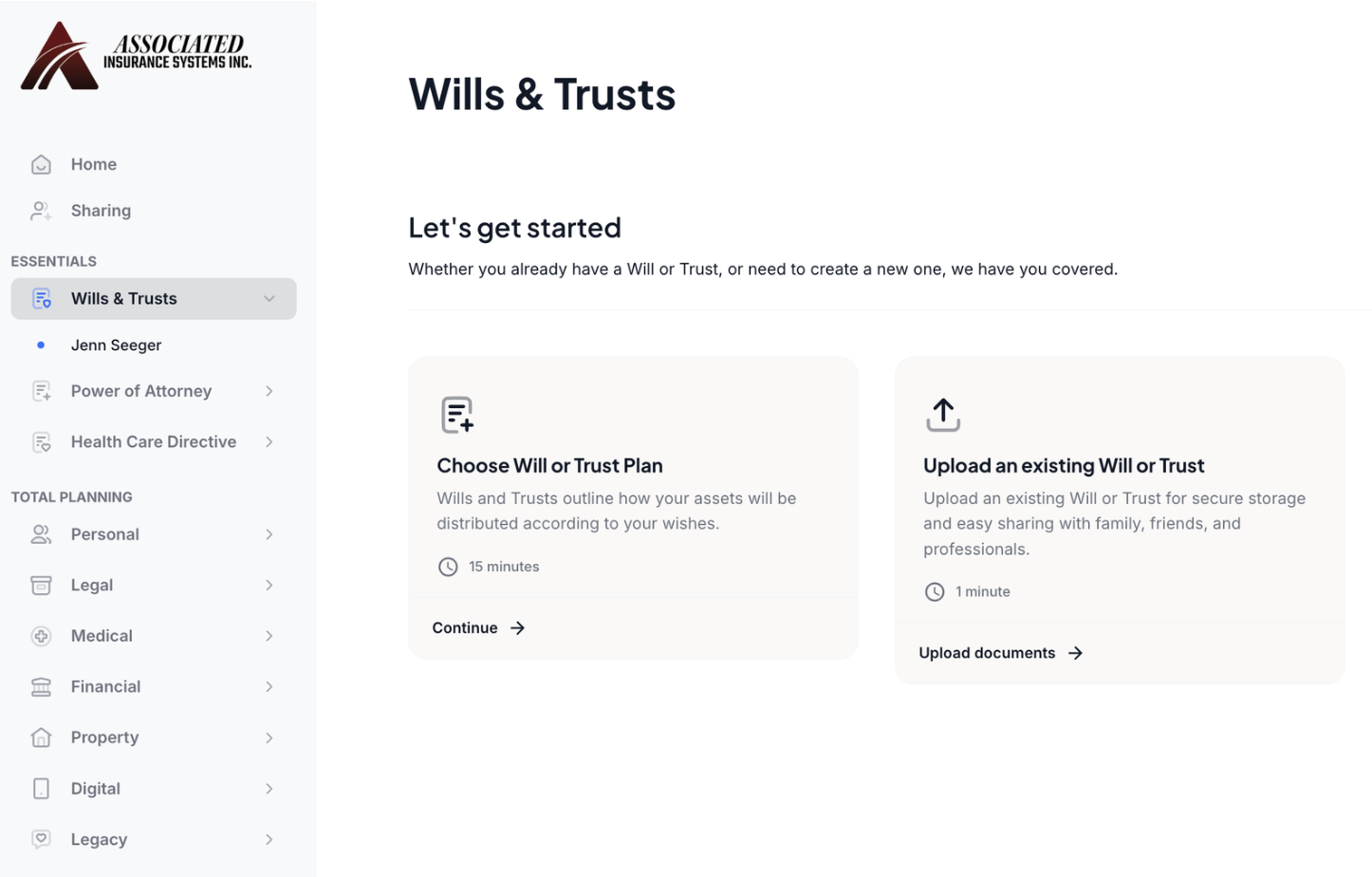 In the Home section of your Legacy Portal you can add a letter to your family and in the Legacy section you can upload a video message that can provide your thoughts and wishes for future generations.